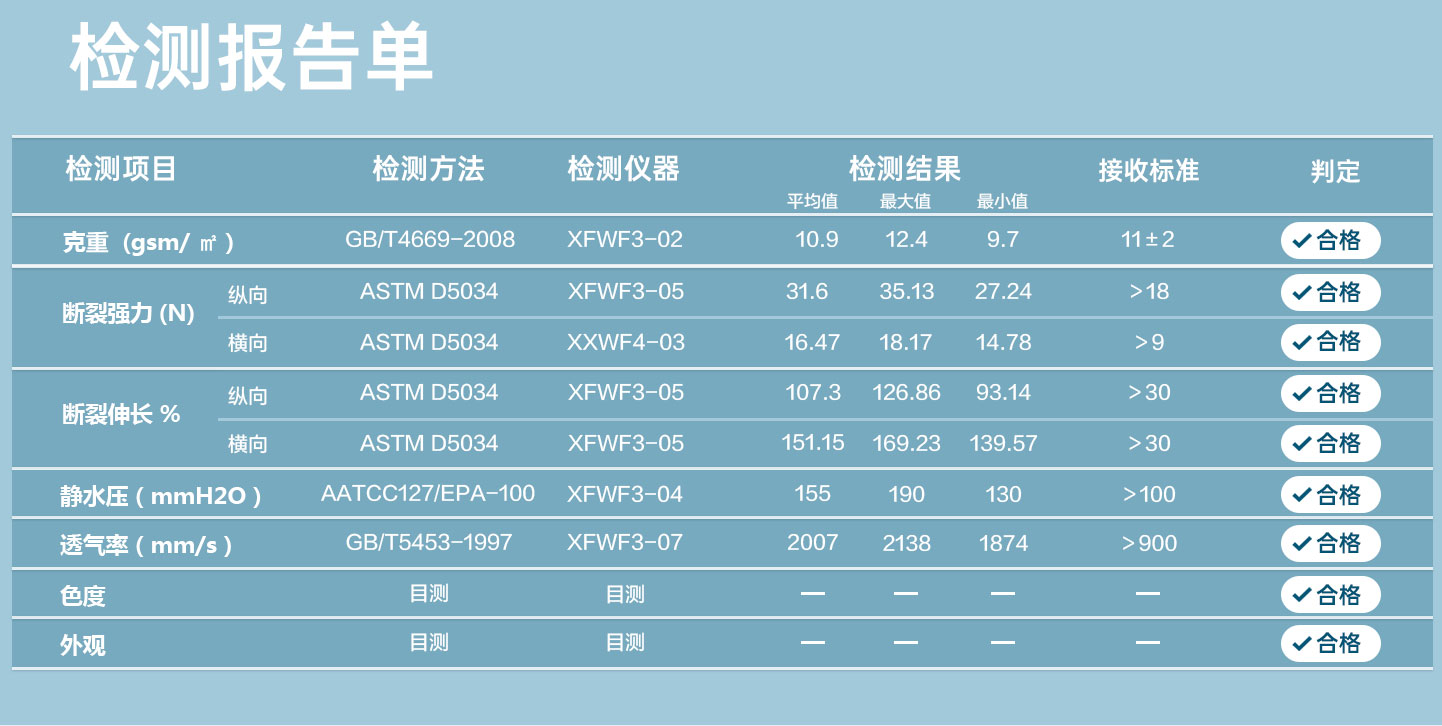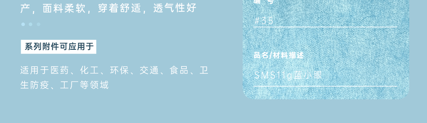 主要成分:聚丙烯 克重:11g 顏色:藍(lán)色 產(chǎn)品用途:該款布料為紡粘聚丙烯無紡布,可提供優(yōu)異的液體和防塵保護(hù),可用于圓帽生產(chǎn),面料柔軟,穿著舒適,透氣性好