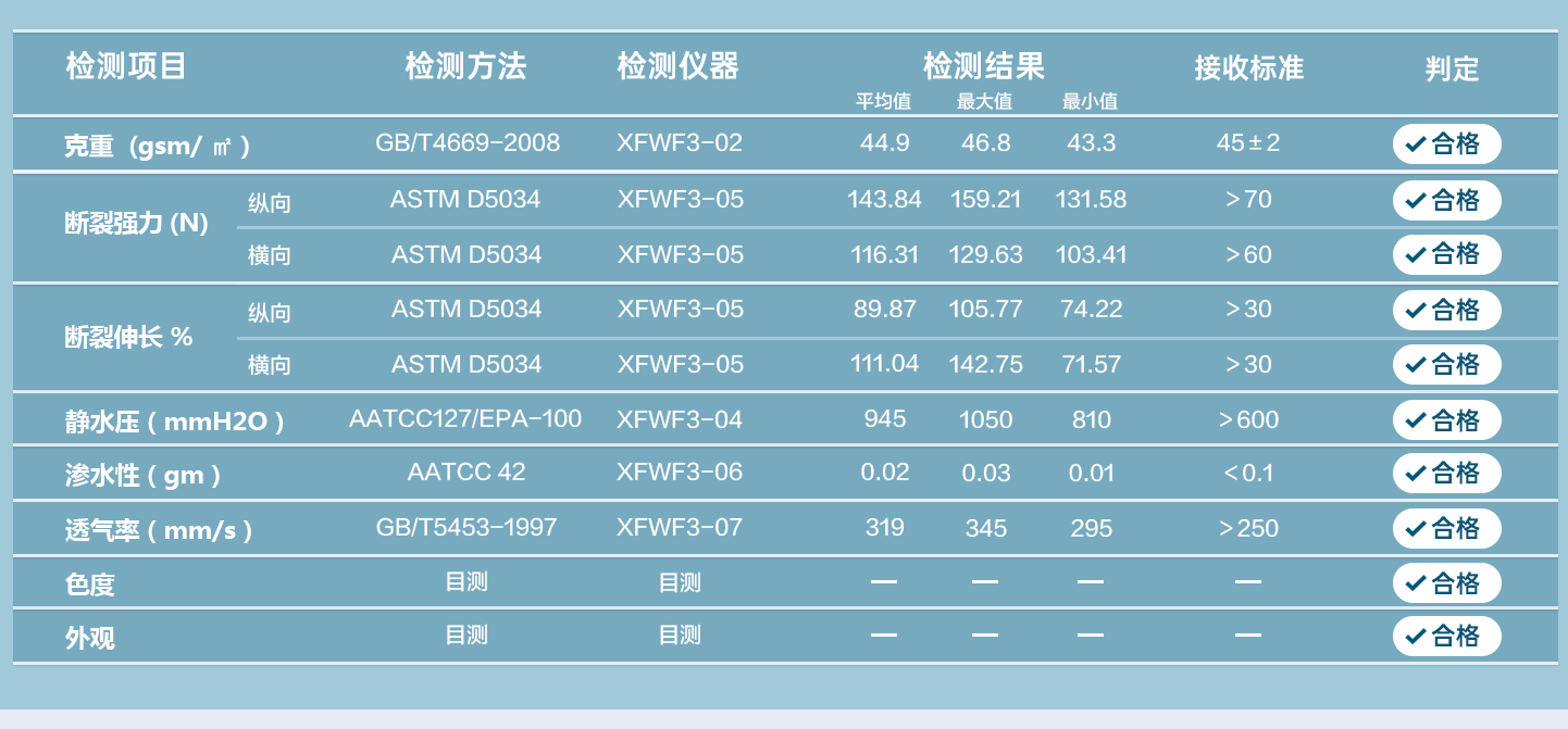 主要成分:PP+PE 克重:45g 顏色:藍(lán)色 產(chǎn)品用途:適用于醫(yī)藥、化工、環(huán)保、交通、食品、衛(wèi)生防疫、工廠等領(lǐng)域
