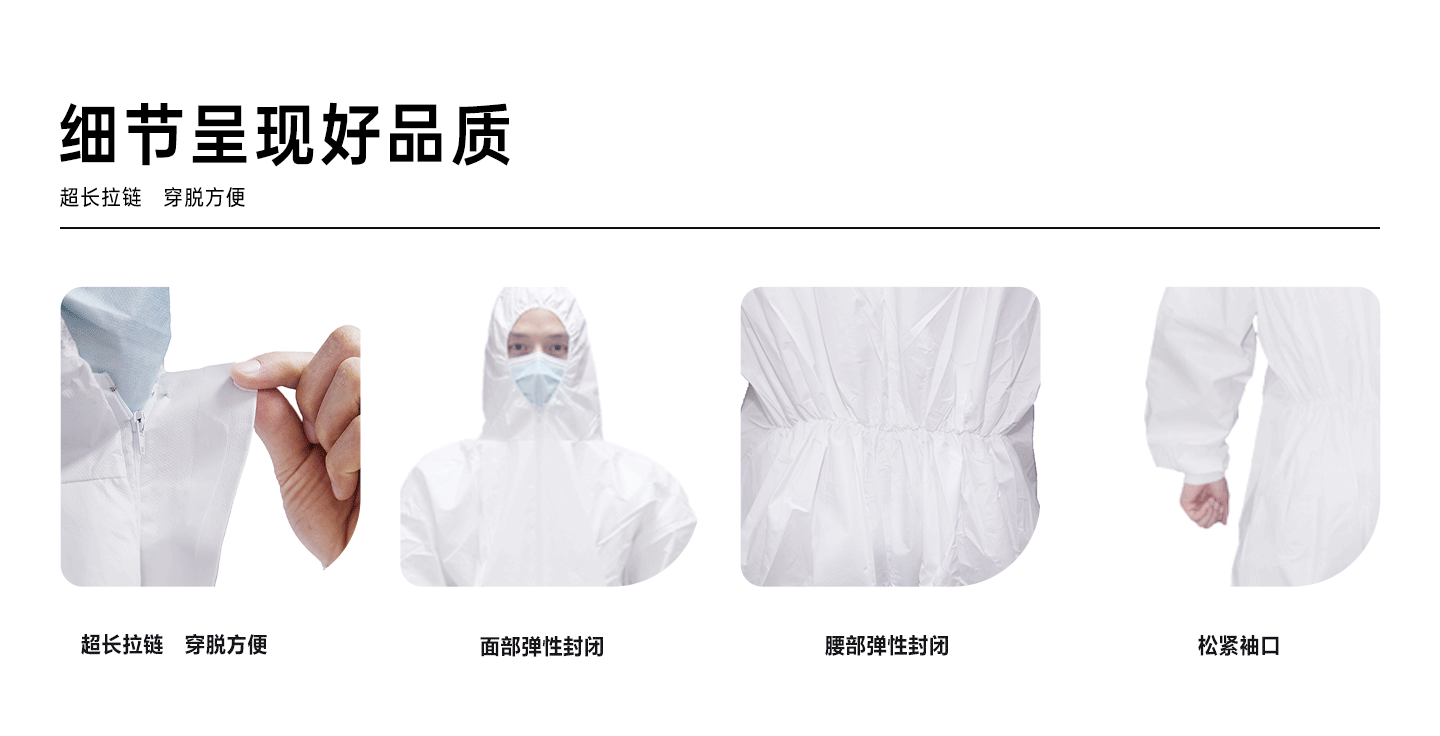規(guī)格尺寸:S~4XL 主要成分:聚丙烯 克重:48g-65g 工藝:車縫、拉鏈無(wú)蓋扁、有帽無(wú)鞋套 包裝:1件/包 25包/箱